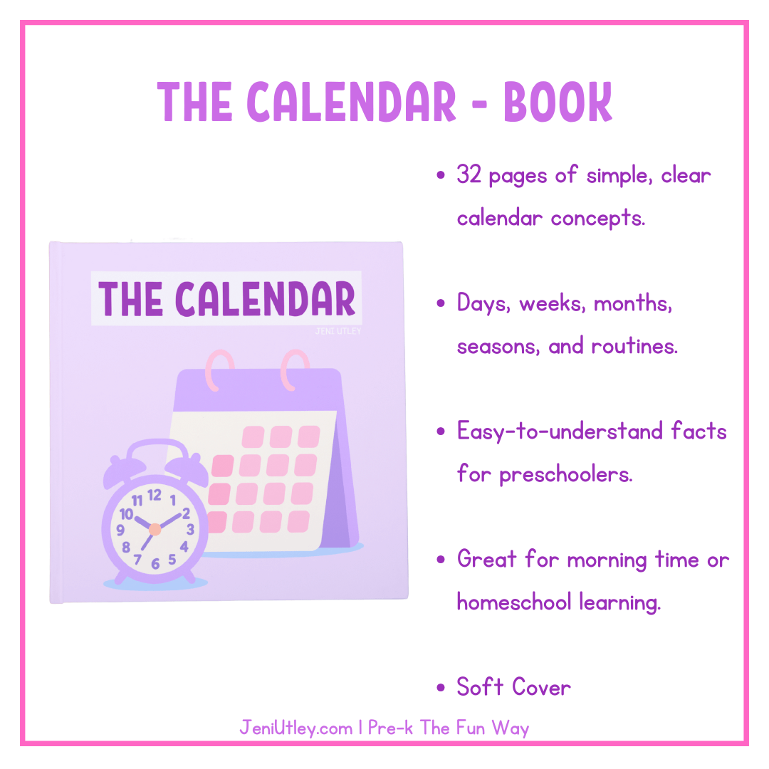 Also, check out my Preschool Calendar Book. It is a 32-page early-learning book filled with simple facts and visuals that help preschoolers understand days, weeks, months, and how calendars work.