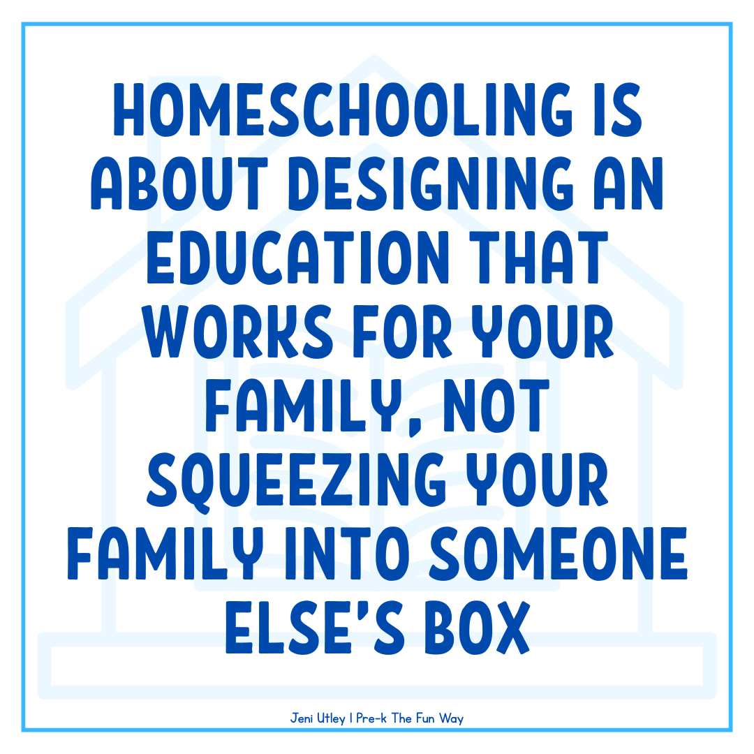 The best way to think of it is this: homeschooling is about designing an education that works for your family, not squeezing your family into someone else’s box.