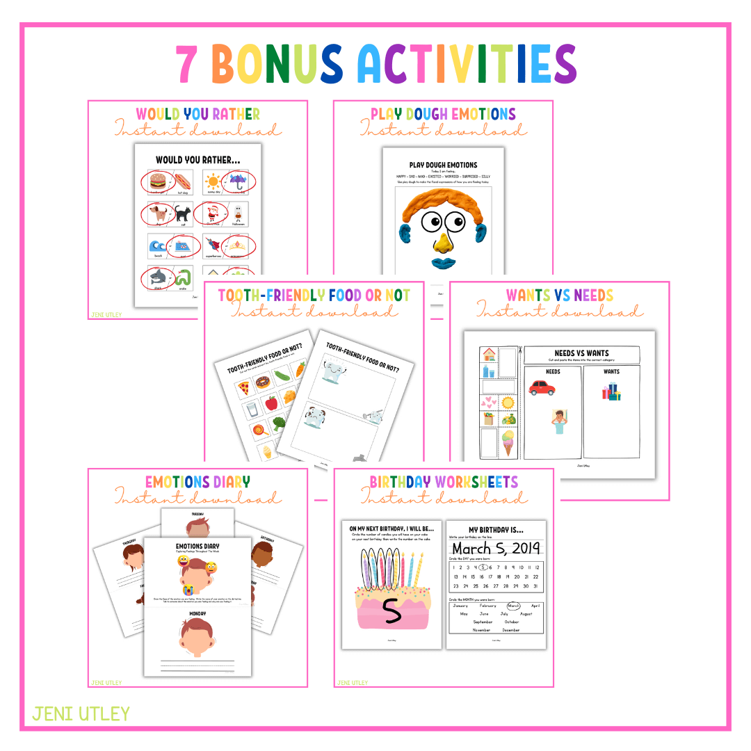 An “All About Me” unit is exactly what it sounds like: a time for your child to learn more about who they are, what makes them unique, and how they relate to the world around them. It’s the perfect way to start the year because it builds a connection between you and your child while gently introducing learning expectations.