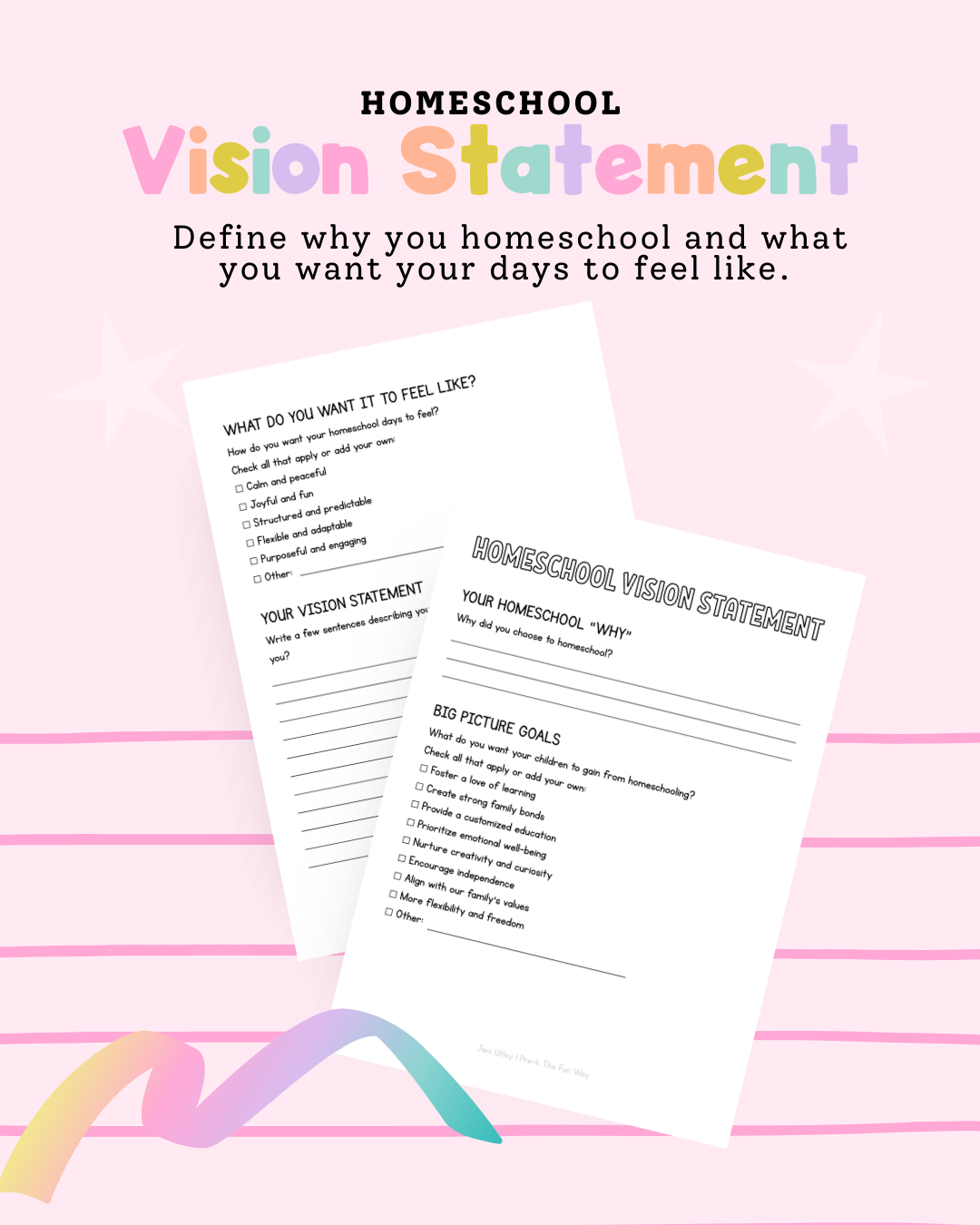 One or two goals for homeschool. One or two goals for home life. Keep it realistic and doable.
